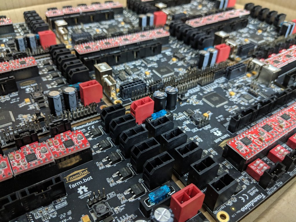 The v1.4 electronics will include a new version of the Farmduino with an STM32 co-processor to monitor the rotary encoders at a much higher frequency than was possible with the Atmega 2560 chip. More details on the improvements, as well as the complete schematics will come with the documentation.