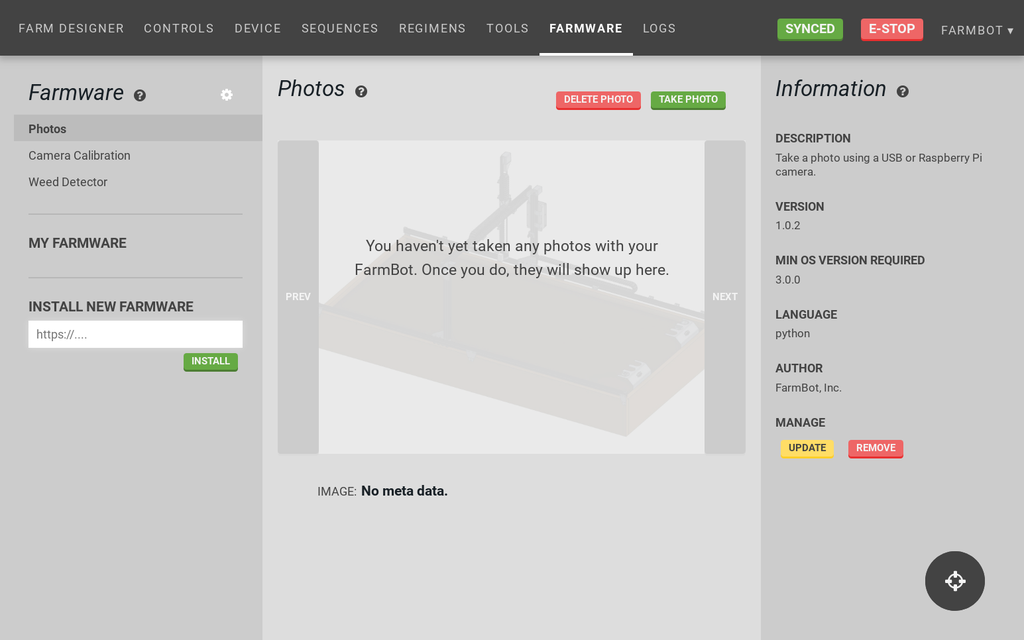 As we see more of you experimenting with and sharing Farmware to provide more functionality to your FarmBots, we’ve been working to improve the process of developing and using these plugins. In the last update we released Farmware Tools and sequence step parameter inputs. For this update, we’ve reworked the Farmware page layout, which now features panels similar to the Sequences and Regimens pages. The new layout allows easier access to Farmware input forms and provides a panel for more detailed Farmware information to be displayed.