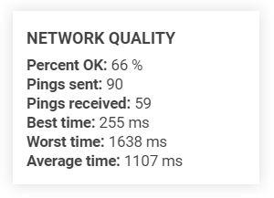 This works by sending FarmBot a "ping" message from your web browser, and then measuring the time taken for the FarmBot's responding "pong" message to return to your browser. If your phone or laptop has a poor connection to the Internet (weak WiFi signal, slow mobile connection, etc), and/or if your FarmBot has a poor connection (weak WiFi signal, etc) then it may take a long time for the messages to go from the browser to the bot and back to the browser again, or the message may get lost entirely. If too much time passes, the message will be considered lost, and the Percent OK metric will decrease from 100%.