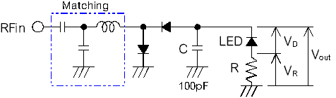 検波用ダイオード,LED,抵抗、マッチング回路用部品、それに1×2cm程度の基