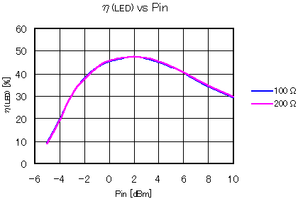 LEDの電流制限抵抗を100Ω,200Ωに設定して測定を行いました。−5dBm