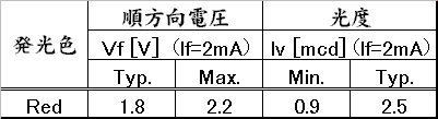 イプのLEDを使用しました(ローム製)。このLEDの概略特性を表1に示します。