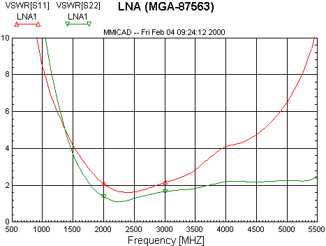 目標性能 : Gain > 10dB,NF < 2dB,VSWR < 2