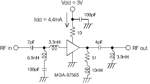MGA−87563は、入出力の整合がある程度確保されており、バイアス回路も内