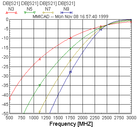n=3,5,7,9 fc=2500MHz Zo=50Ω