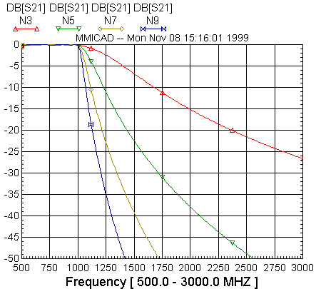 n=3,5,7,9 fc=1000MHz Zo=50Ω