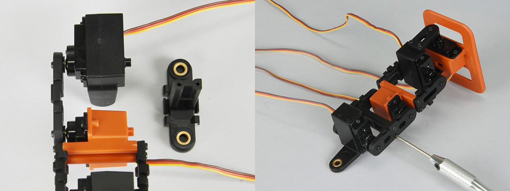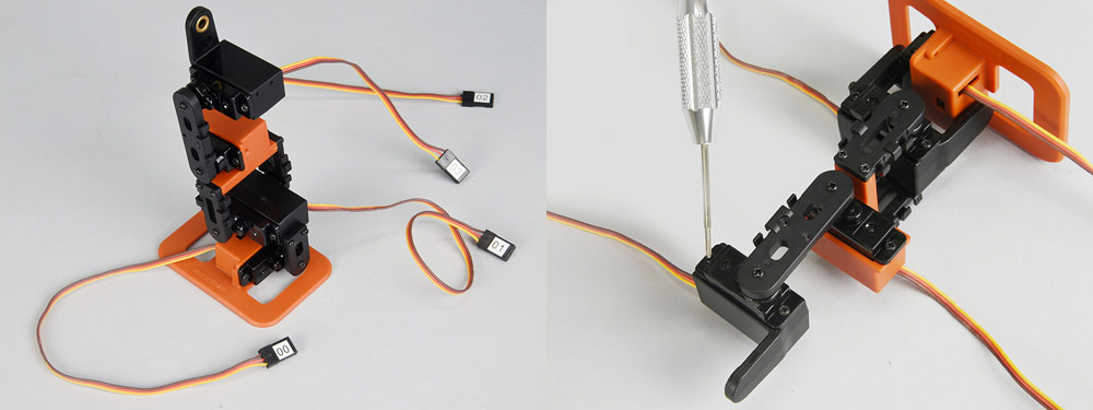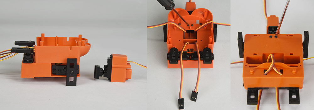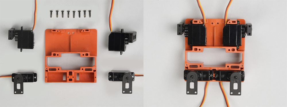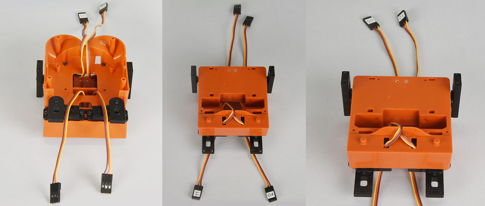 - During assembling, please make sure to follow the figures. Pay attention to the servo number and direction of part