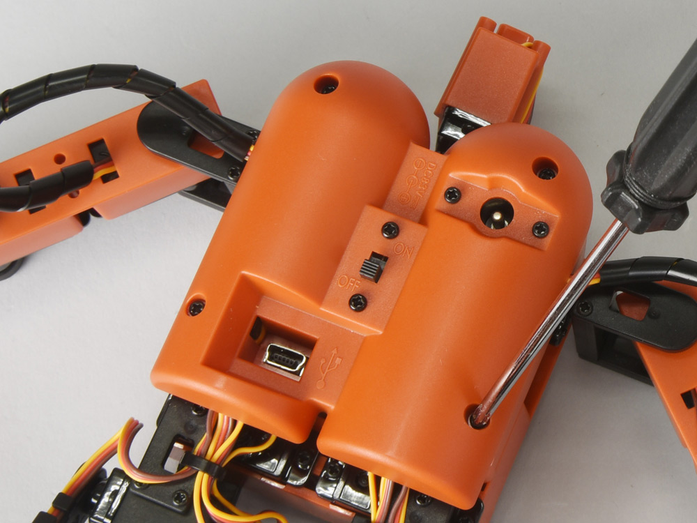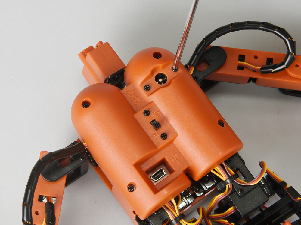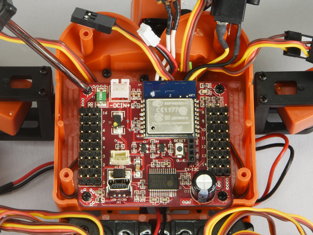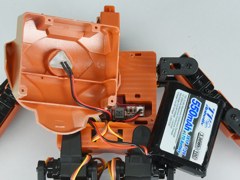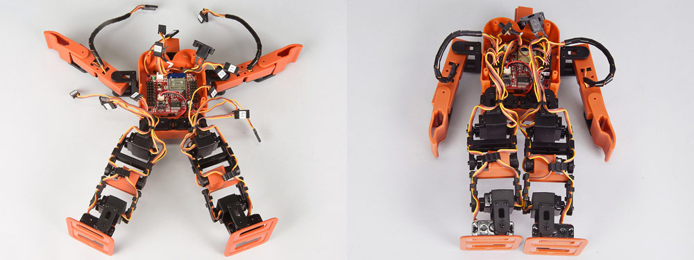 Arrange the wire of main control panel according to the figure and reserve enough space for left/right leg servo wire (#0,#1,#2,#3,#12,#13,#14,#15) and then put them to fixed positions, use binding belt to fix them.